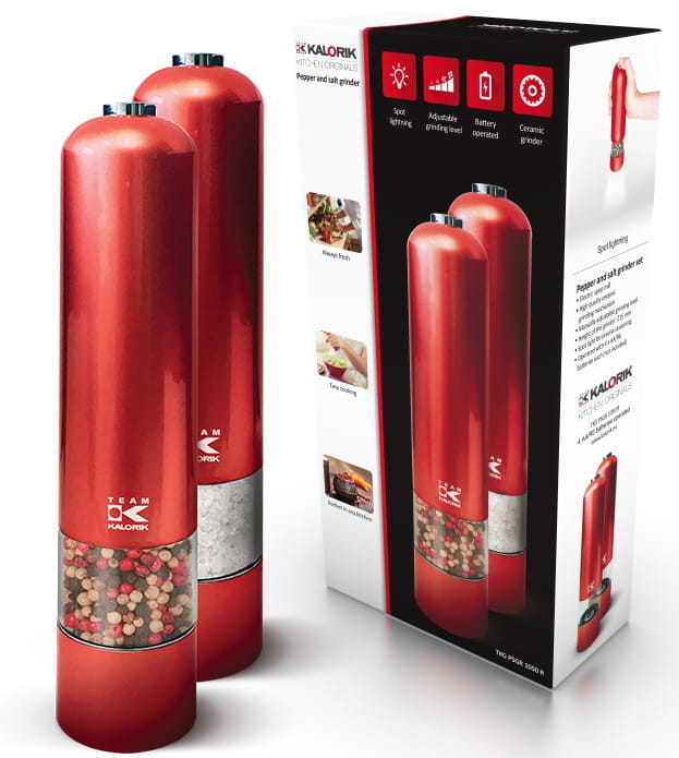 100% funkcjonalności w połączeniu z designem na najwyższym poziomie? Oczywiście tylko w KALORIK, co zauważyć można na przykładzie prezentowanych młynków elektrycznych do soli i pieprzu. Młynki zaprojektowane są tak, by dzięki minimalistycznej stylistyce pasowały do nowoczesnych i klasycznych przestrzeni, a dzięki ciekawej kolorystyce pięknie zdobiły tą przestrzeń.